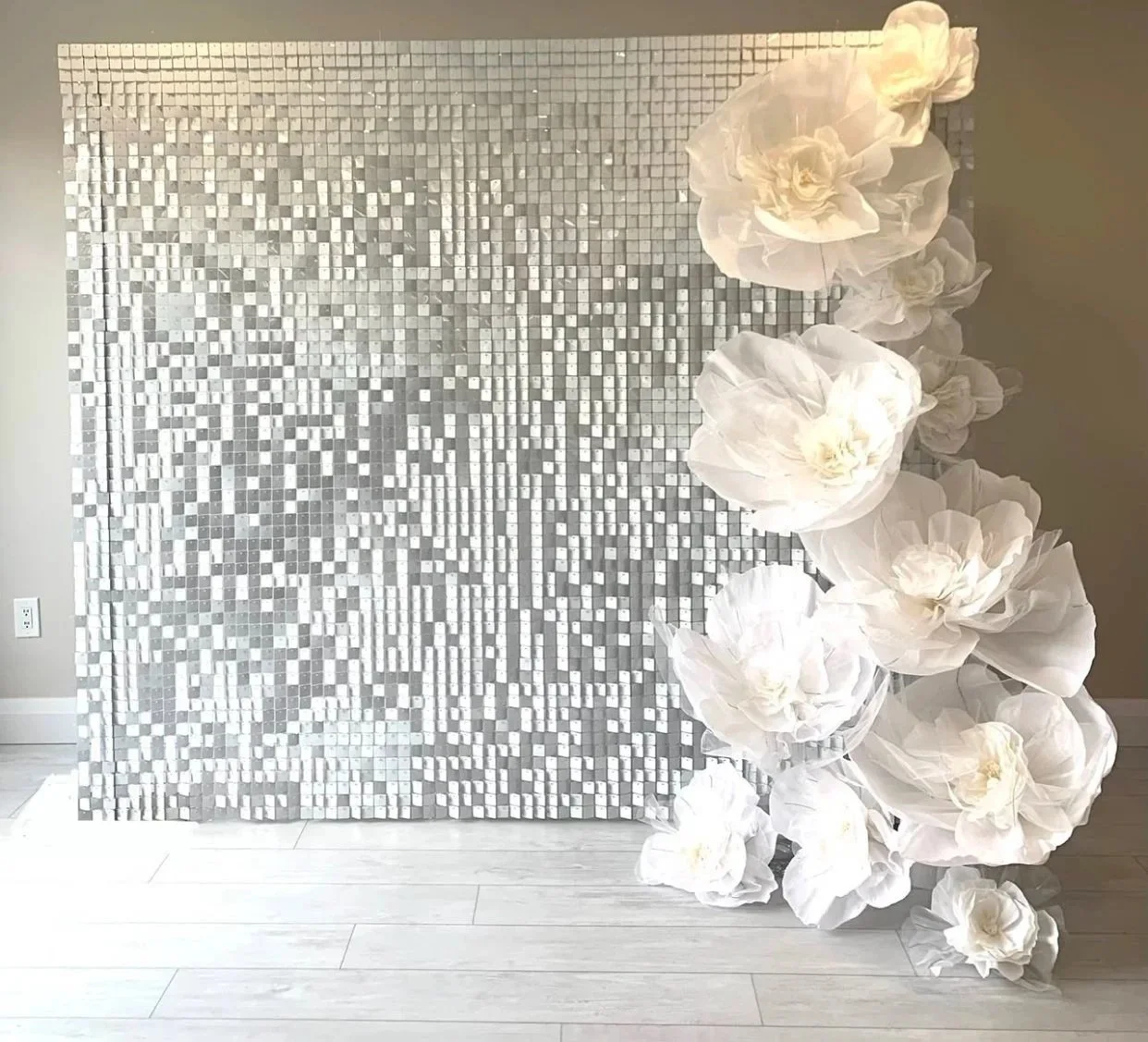 Add a touch of luxury and personalization to your wedding reception or bridal shower with a glossy white sequin wall. An exquisite backdrop for your head table, or the perfect photo wall for your guests to create cherished memories to treasure for years to come.